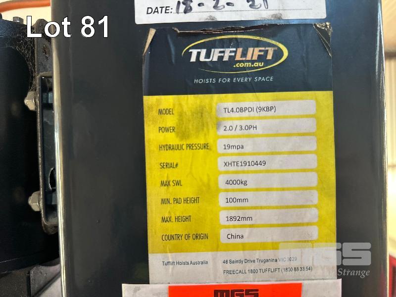 2 POST FLOOR HOIST, TUFF LIFT MOD: TL408PDI 4,000kg 415V
