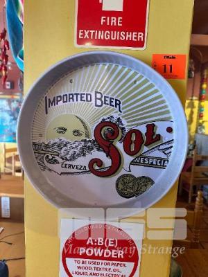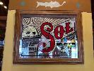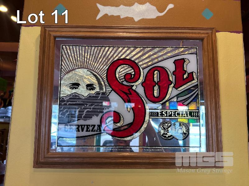 SOL CERVEZA BEER TRAY, 2 x SMALL VINTAGE CORONA EXTRA TIN TRAYS, FRAMED & GLAZED SOL CERVEZA MIRROR, 470 x 380mm