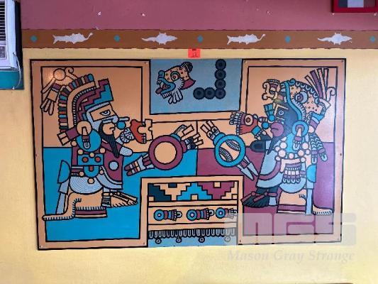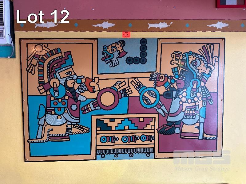 BLOCK MOUNT AZTEC PAINTING, 1800 x 1100mm & 2 x SMALL BLOCK MOUNT AZTEC PAINTINGS, 600mm