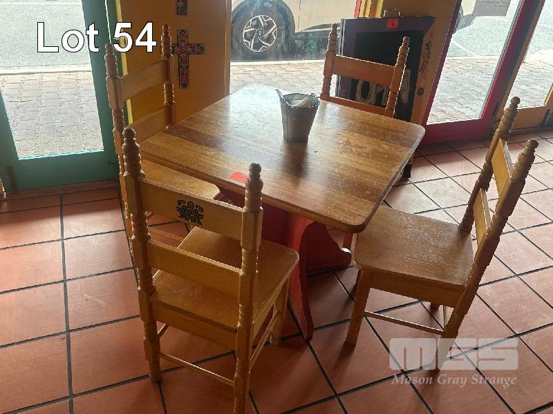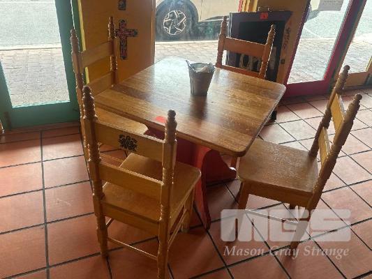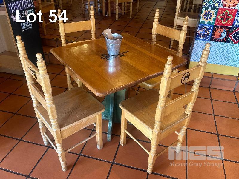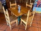 PAIR SOLID TIMBER TABLES, 870 x 870mm WITH 8 x SOLID TIMBER CHAIRS