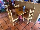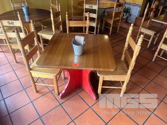 PAIR SOLID TIMBER TABLES, 870 x 870mm WITH 6 x SOLID TIMBER CHAIRS