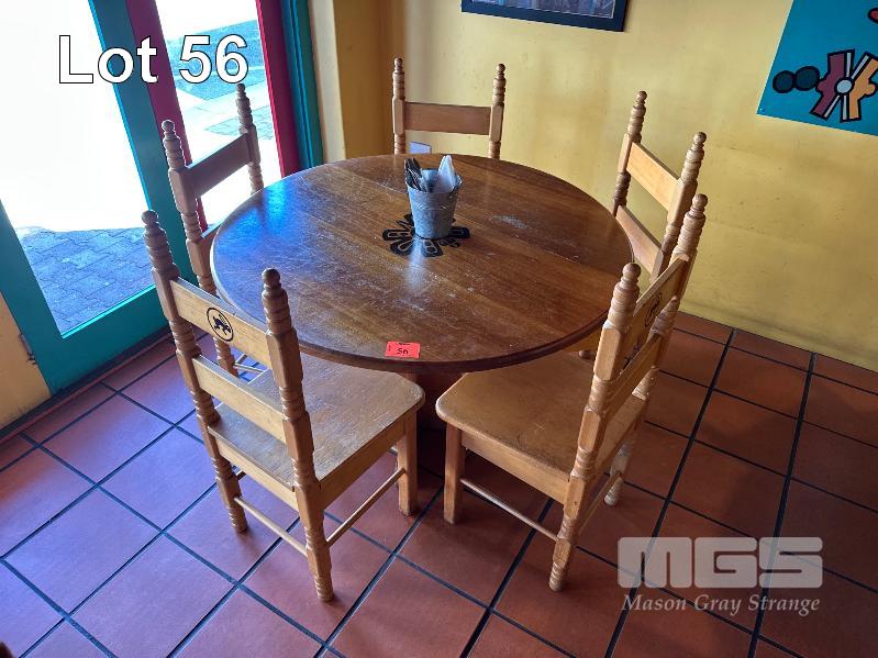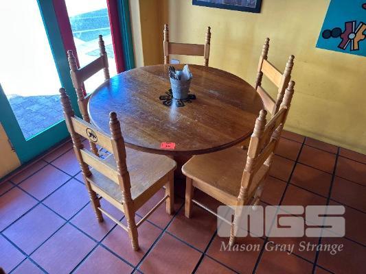 CIRCULAR SOLID TIMBER TABLE, 1140mm (D) WITH 5 x SOLID TIMBER CHAIRS