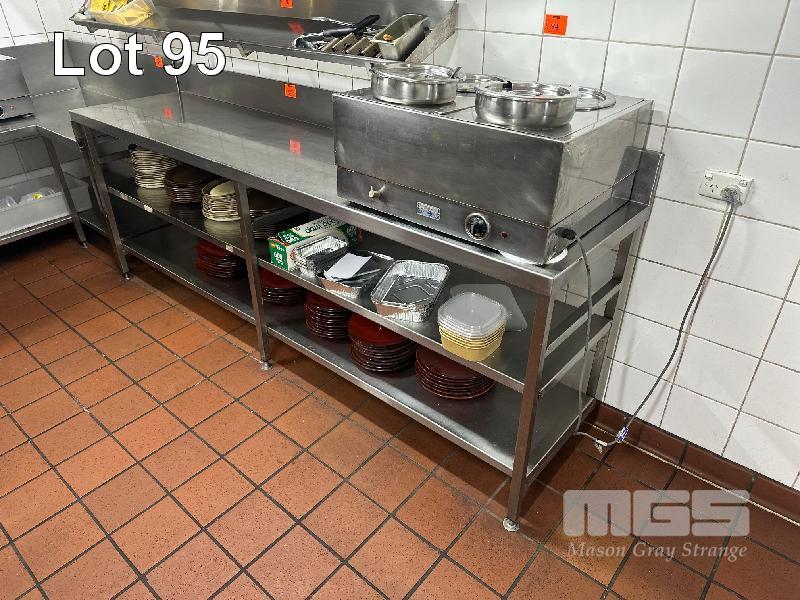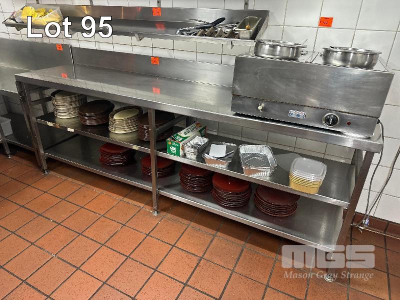 STAINLESS STEEL BENCH, 2500 x 600mm, 3 TIER WITH SPLASHBACK
