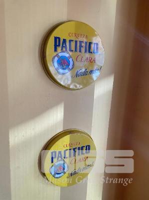 PAIR VINTAGE PACIFICO CERVEZA TIN SIGNS