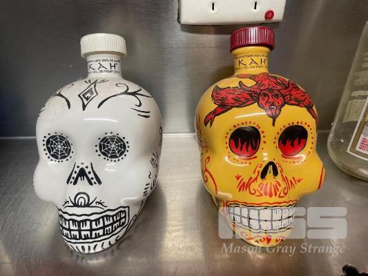 2 x VINTAGE KAH TEQUILA SKULL BOTTLES (EMPTY)
