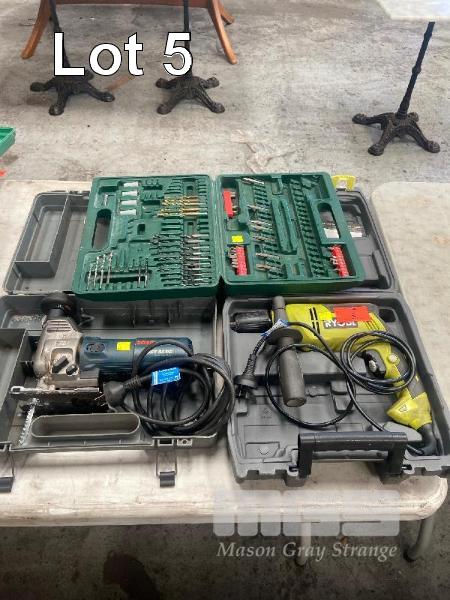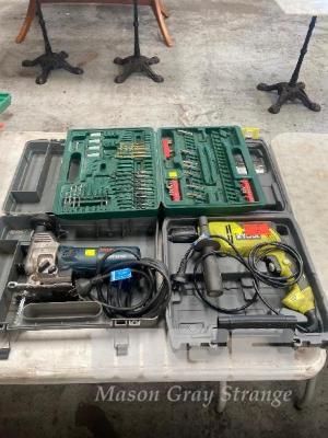 BOSCH JIGSAW & RYOBI DRILL IN CASES, 240V WITH DRILL BITS IN CASE