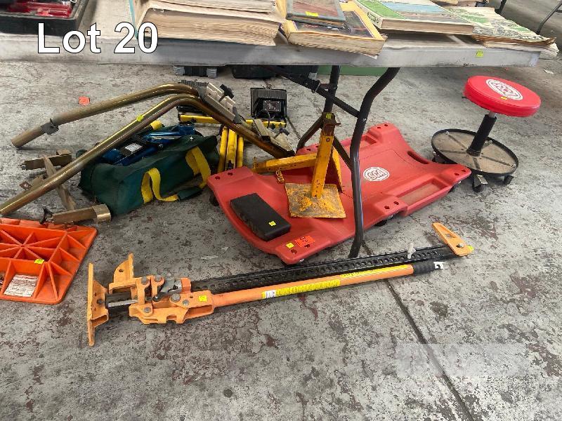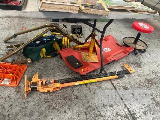 WORKSHOP CREEPER, SEAT, HIGH RISE JACK, TROLLEY JACK,, WORK LIGHT, BIKE RACK & CAR STANDS