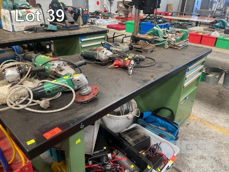 STEEL WORK BENCH, 2000 x 800 x 890mm WITH UNDERBENCH CABINET, 4 DRAWER