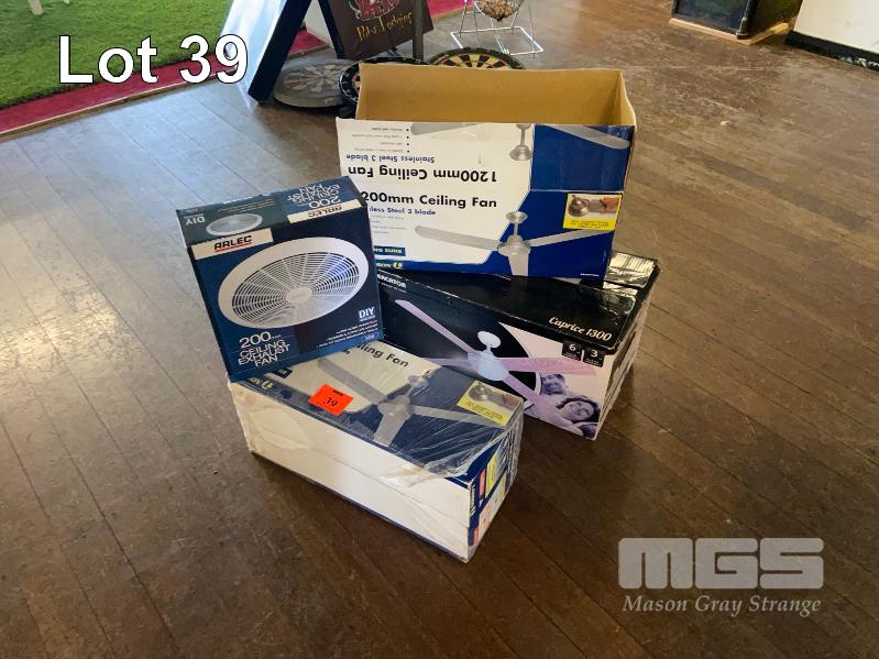 3 x CEILING FANS, 1200 & 1300mm WITH CEILING EXHAUST FAN, 200mm