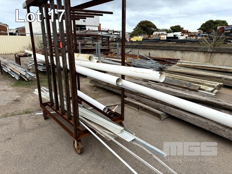 STEEL MOBILE RACK & CONTENTS PVC PIPE & METAL PIECES