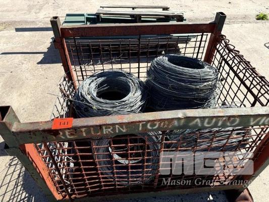 METAL CAGE STILLAGE & CONTENTS ROLLS OF GALVANISED WIRE