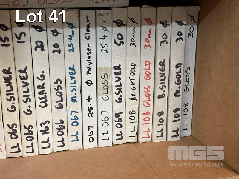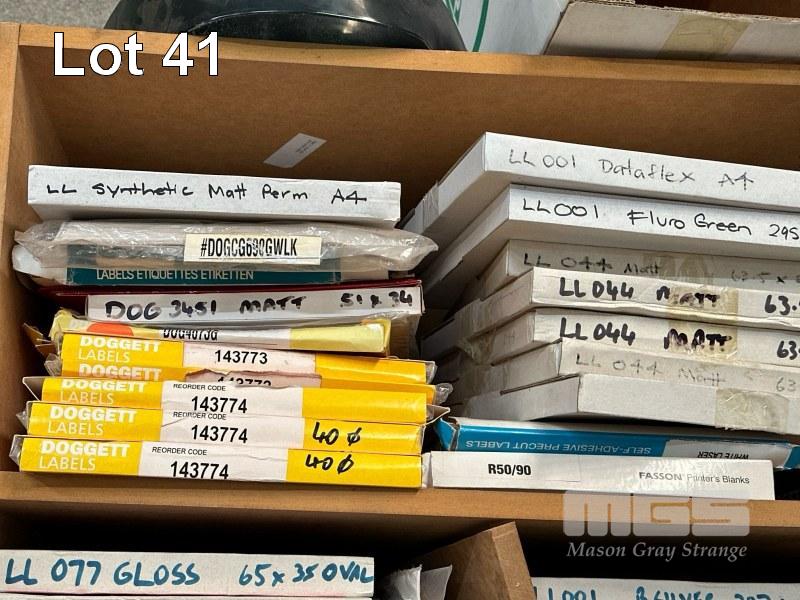 QTY ASST LABEL STOCK, GLOSS, MATT, VARIOUS SIZES ETC