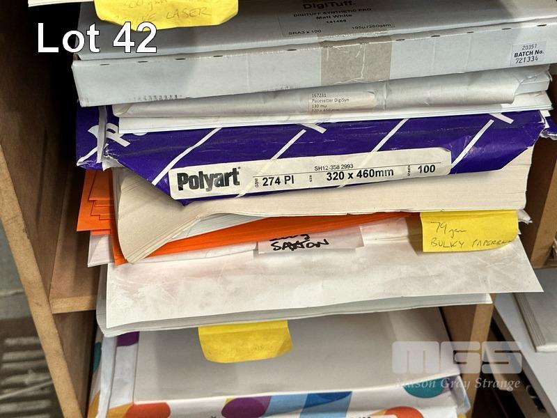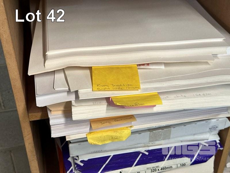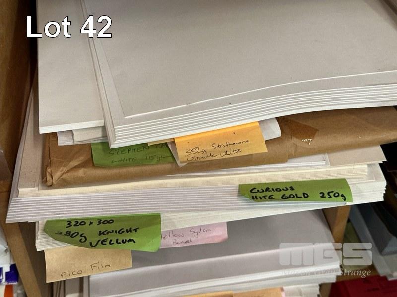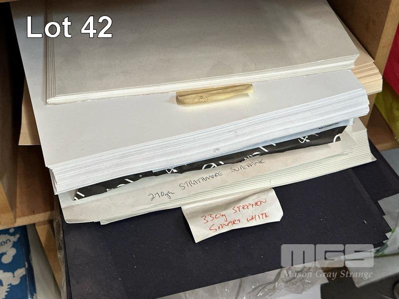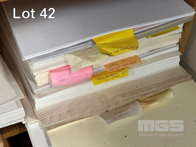 QTY ASST PAPER STOCK, 300g PACESETTER, 352g STRATHMORE ULTIMATE WHITE, 250g CURIOUS WHITE GOLD, 250g CRYOGEN WHITE ETC