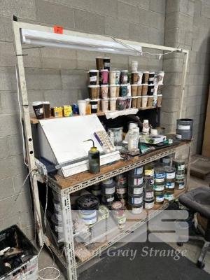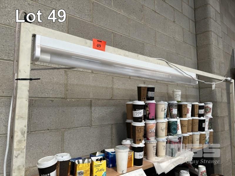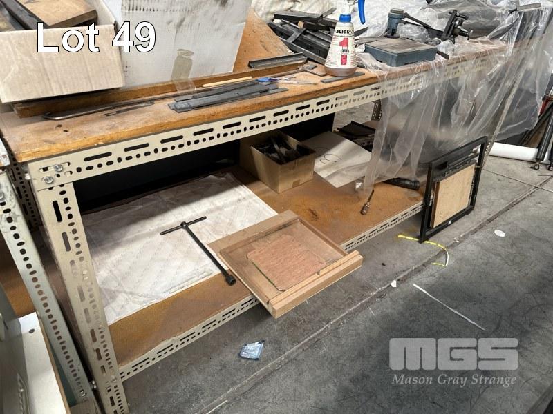 2 x WORKBENCHES, EACH 185 x 80cm (1 x WITH CUSTOM LIGHTING FRAME)