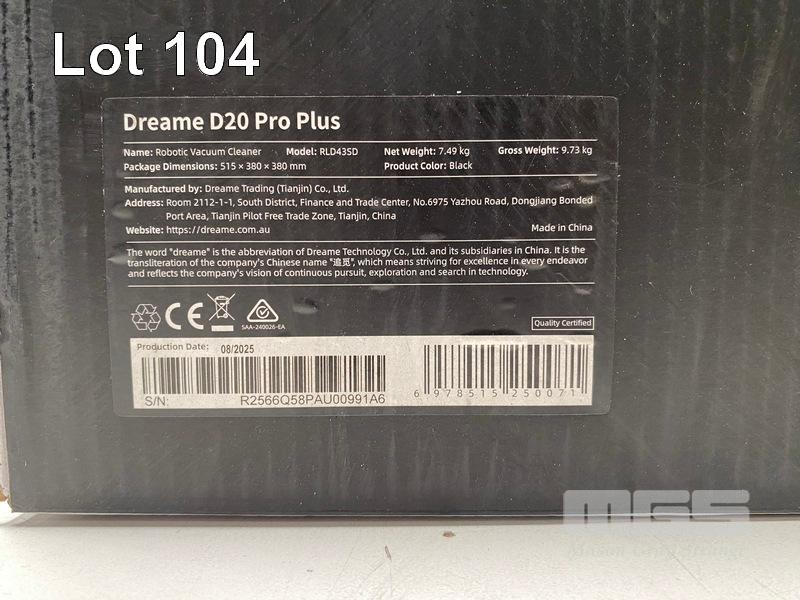 ROBOT VACUUM, DREAME D20 PRO PLUS AND MOP - BLACK, DRE-D20PP (RRP $999) (BOXED) (SUBJECT TO INSURANCE CLAIM)