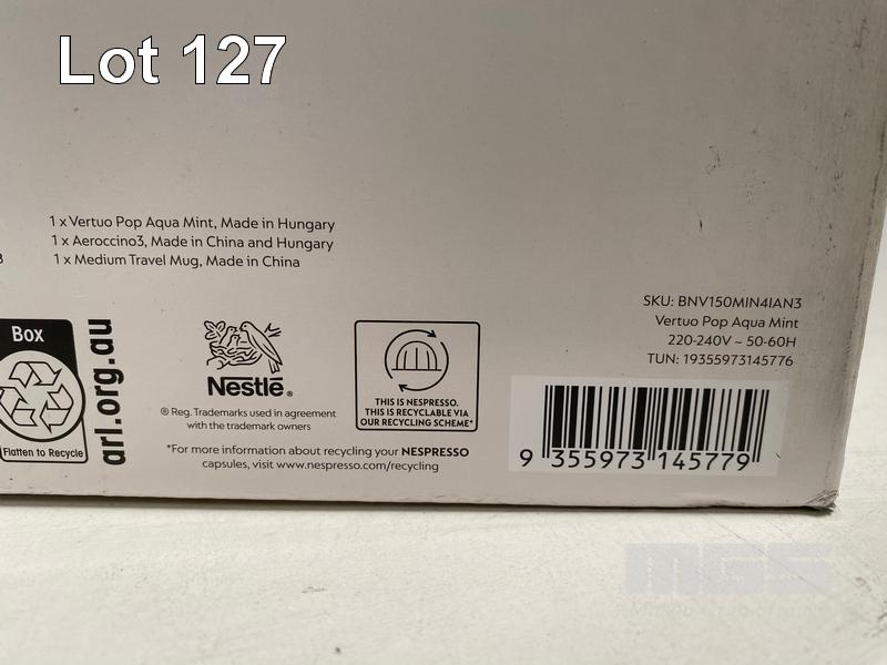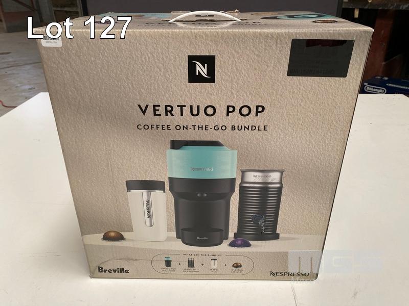COFFEE MACHINE, NESPRESSO VERTUO POP BUNDLE BY BREVILLE - MINT, BNV150MIN4IAN3 (RRP $279) (BOXED) (SUBJECT TO INSURANCE CLAIM)