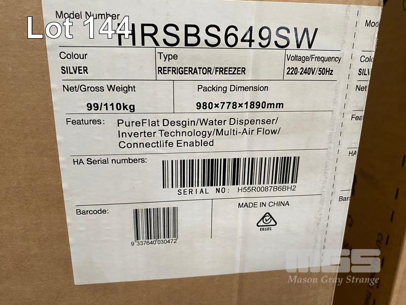 FRIDGE, HISENSE 649L PUREFLAT SIDE BY SIDE WITH NON PLUMBED WATER DISPENSER, HRSBS649SW (RRP $1,599) (BOXED) (SUBJECT TO INSURANCE CLAIM) S/N:H55R0087B6BH2