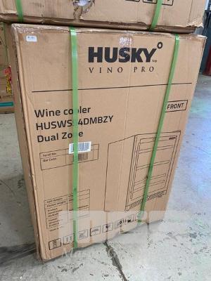 WINE CABINET, HUSKY RISERVA 154L DUAL ZONE WITH LED INTERNAL LIGHT, 54 BOTTLE, HUSWS54DMBZY (RRP $1,899) (BOXED) (SUBJECT TO INSURANCE CLAIM) S/N:90382022080