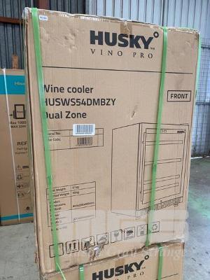 WINE CABINET, HUSKY RISERVA 154L DUAL ZONE WITH LED INTERNAL LIGHT, 54 BOTTLE, HUSWS54DMBZY (RRP $1,899) (BOXED) (SUBJECT TO INSURANCE CLAIM) S/N:90382022082