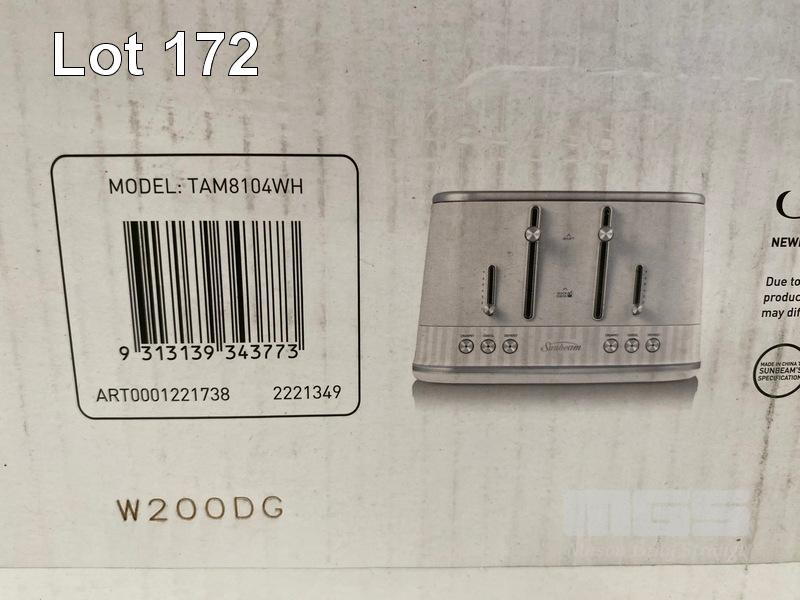 TOASTER, SUNBEAM 4 SLICE FRENCH RIVIERA - WHITE, TAM8104WH (RRP $149) (BOXED) (SUBJECT TO INSURANCE CLAIM)
