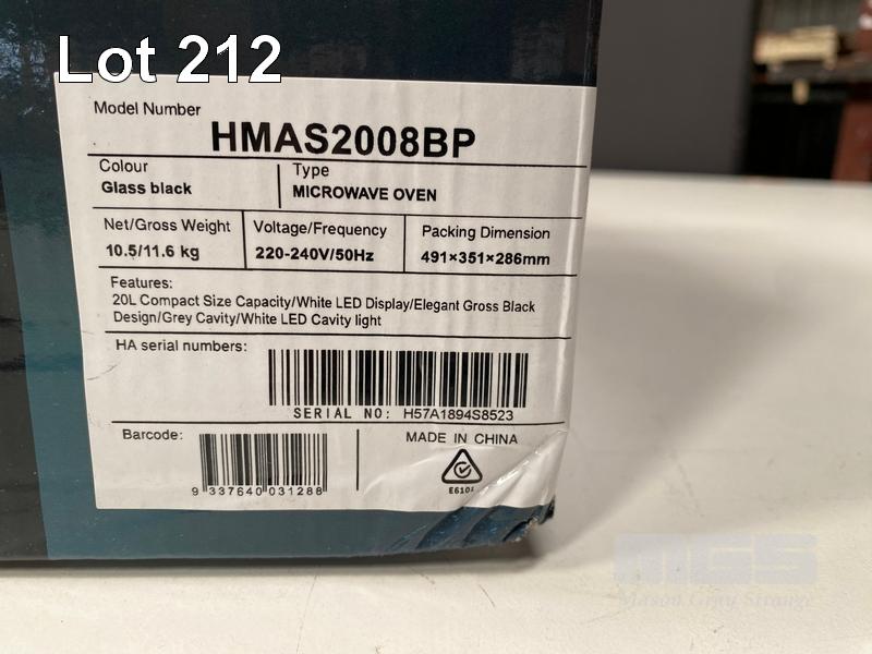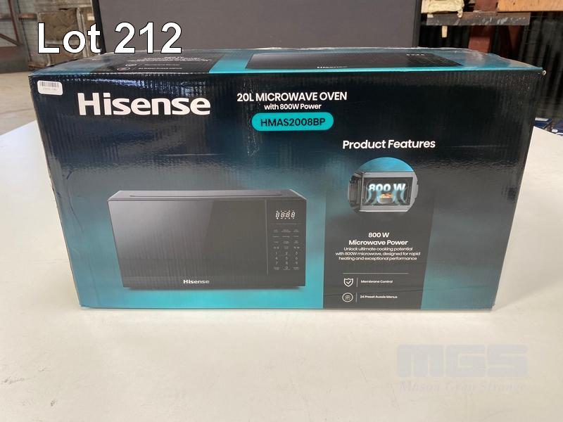 MICROWAVE, HISENSE 20L 800W SOLO, HMAS2008BP (RRP $149) (BOXED) (SUBJECT TO INSURANCE CLAIM) S/N:H57A1894S8523