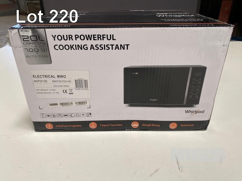 MICROWAVE, WHIRLPOOL 20L SOLO - BLACK, MWP201SB (RRP $129) (BOXED) (SUBJECT TO INSURANCE CLAIM)