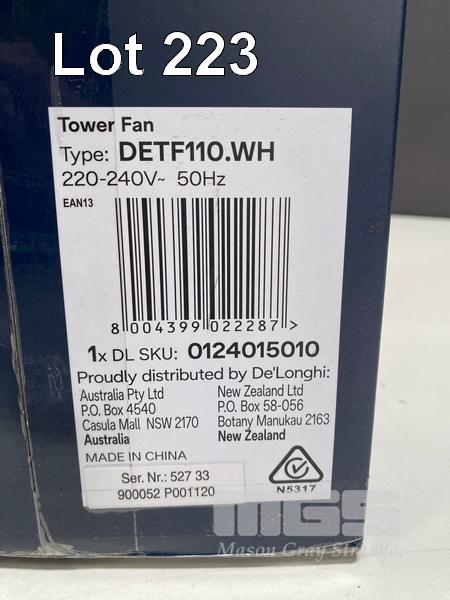 FAN, DELONGHI OSCILLATING TOWER - WHITE, DETF110WH (RRP $177) (BOXED) (SUBJECT TO INSURANCE CLAIM)