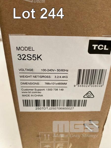TV, TCL 32-INCH S5K QLED FULL HD ANDROID, 32S5K (RRP $395) (BOXED) (SUBJECT TO INSURANCE CLAIM) S/N:2507DTJ250706900027