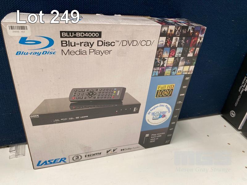 BLU-RAY PLAYER, LASER WITH MULTI REGION, BLU-BD4000 (RRP $149) (BOXED) (SUBJECT TO INSURANCE CLAIM)