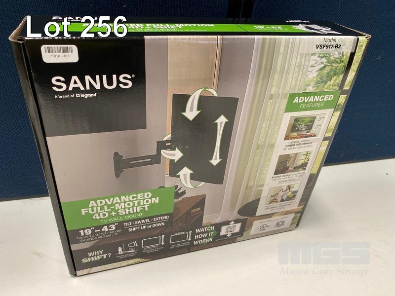 TV WALL MOUNT, SANUS ADVANCED FULL-MOTION 4D 19INCH TO 43INCH + SHIFT, VSF917-B2 (RRP $195) (BOXED) (SUBJECT TO INSURANCE CLAIM)