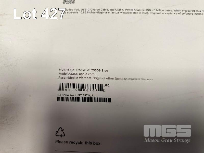 TABLET, APPLE iPAD A16 (2025) 11-INCH WI-FI 256GB - BLUE, MD4H4X/A (RRP $799) (BOXED) (SUBJECT TO INSURANCE CLAIM) S/N:SHFK0497WJJ