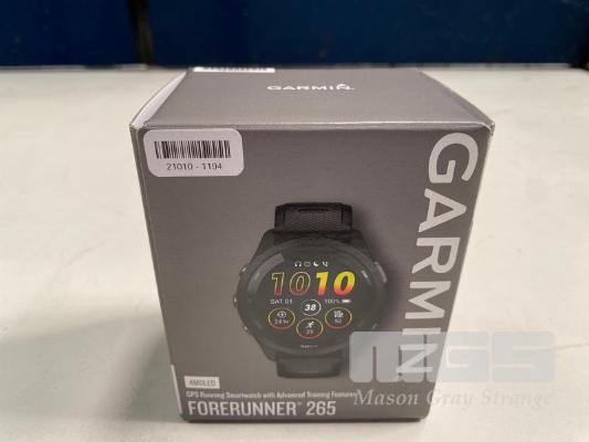 SMART WATCH, GARMIN FORERUNNER 265 - BLACK BEZEL AND CASE WITH BLACK/POWDER GREY SILICONE BAND