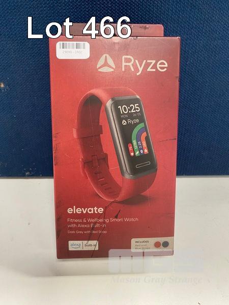 SMART WATCH, RYZE ELEVATE FITNESS & WELLBEING - DARK GREY WITH RED STRAP, RZ-ELRD (RRP $88) (BOXED) (SUBJECT TO INSURANCE CLAIM)