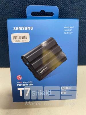 HARD DRIVE, SAMSUNG T7 SHIELD SSD 1TB, MU-PE1T0S (RRP $369) (BOXED) (SUBJECT TO INSURANCE CLAIM)