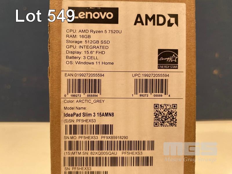 LAPTOP, LENOVO IDEAPAD SLIM 3 15AMN8, AMD RYZEN 5 7520U, 16GB RAM, 512GB SSD, 15.6 INCH, WINDOWS 11 HOME (RRP $999) (BOXED) (SUBJECT TO INSURANCE CLAIM) S/N:SPF5HEXS3