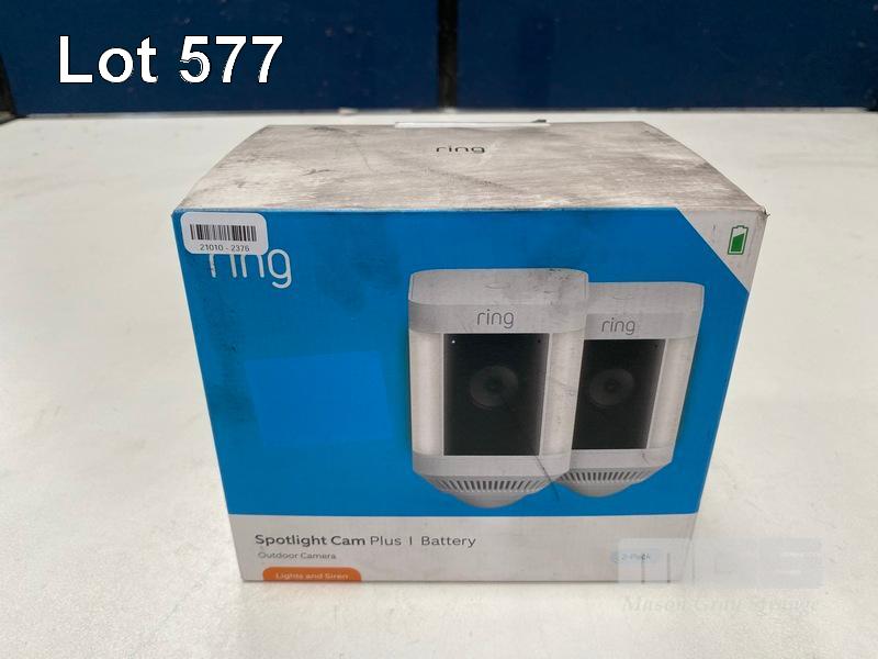 SECURITY CAMERA, RING SPOTLIGHT CAM PLUS BATTERY 2-PACK - WHITE, B0B7QMF9T5 (RRP $478) (BOXED) (SUBJECT TO INSURANCE CLAIM)