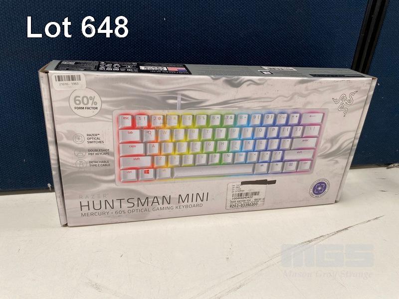 GAMING KEYBOARD, RAZER HUNTSMAN MINI MERCURY EDITION OPTICAL WITH CLICKY PURPLE SWITCH, RZ03-03390300 (RRP $178) (BOXED) (SUBJECT TO INSURANCE CLAIM)