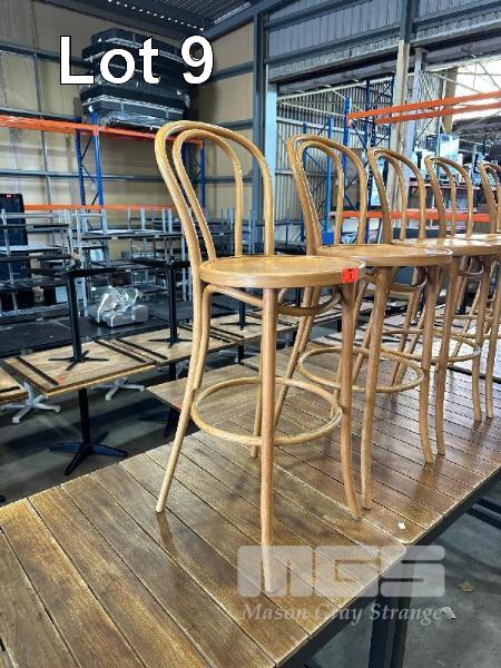 10 x SOLID TIMBER BENT WOOD BAR STOOLS, FAMEG, 740mm (H)