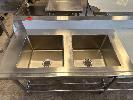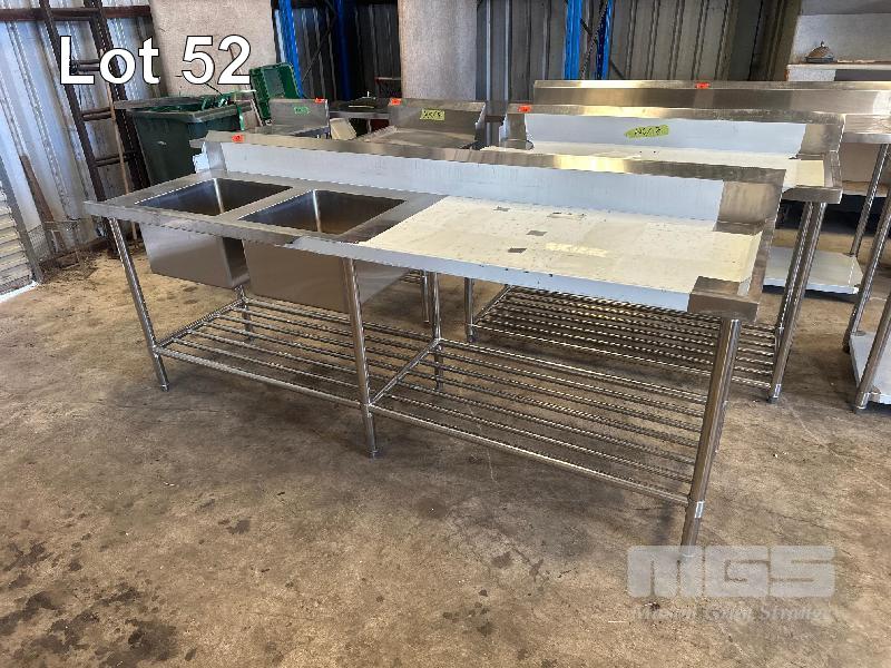 TWIN DEEP BOWL STAINLESS STEEL SINK, 2 TIER WITH SPLASHBACK, LHS DISHWASHER LIP, 2400 X 700mm (FACTORY SECONDS UNUSED)