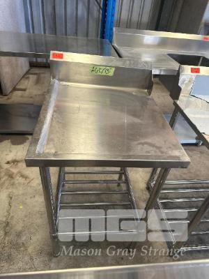STAINLESS STEEL BENCH, 2 TIER WITH SPLASHBACK RHS DISHWASHER LIP, 610 x 700mm (FACTORY SECONDS UNUSED)