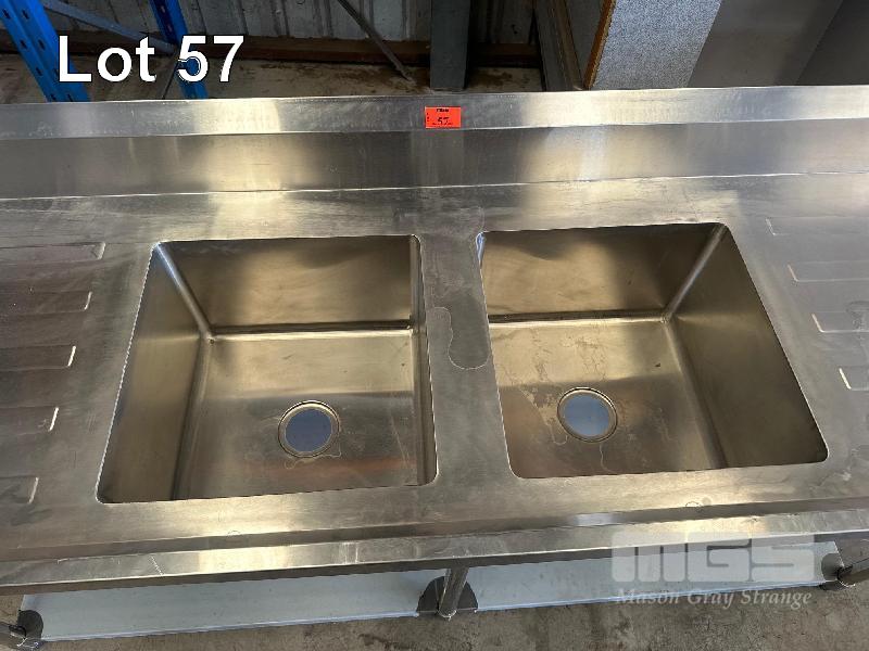 TWIN DEEP BOWL STAINLESS STEEL BENCH, 2 TIER WITH SPLASHBACK