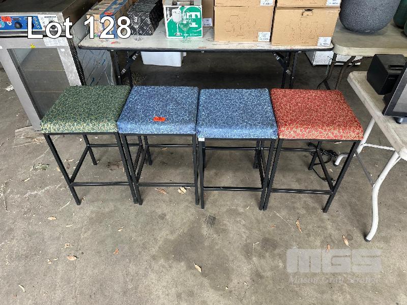 4 x STEEL FRAME STOOLS, FABRIC TOPS, 650mm (H)