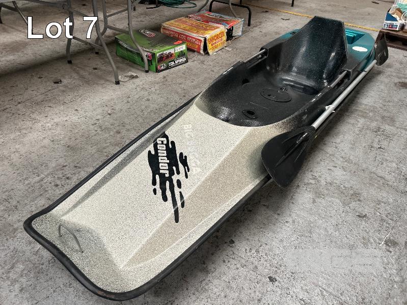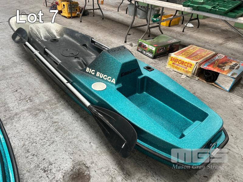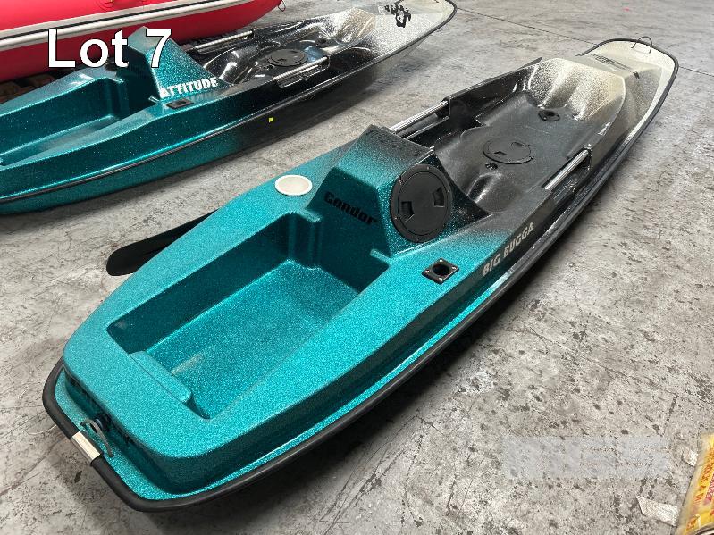 KAYAK, CONDOR MOD: BIG BUGGA FIBREGLASS CONSTRUCITON AQUA, BLACK & SILVER FINISH SIZE: 3360mm (L) WITH PADDLE
