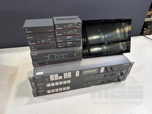 EXTRON SMP 300 SERIES TREAMING MEDIA PROCESSOR, 2 x EXTRON IN1601 SCALING PRESENTATION SWITCHER, QTY EXTRON STP HDMI TRANSCEIVERS & RECEIVERS, DA2 HD 4K, IPCP PRO 350, TOUCHPANEL & POWER SUPPLIES