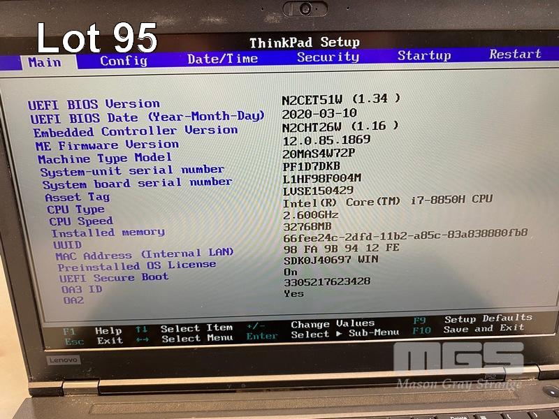 LAPTOP, LENOVO THINKPAD P52 MOBILE WORKSTATION, TYPE 20MA, CORE i7 8850H (8TH GEN) @ 2.6GHz, 32GB DDR4 RAM, 512GB NVMe M.2 SSD, 15.6" WIDESCREEN (1920x1080), 4GB NVIDIA QUADRO P2000 VIDEO, Wi-Fi, BLUETOOTH, WINDOWS 11 PRO INSTALLED & POWER SUPPLY (NOTE: MARKS ON SCREEN) S/N:PF1D7DKB