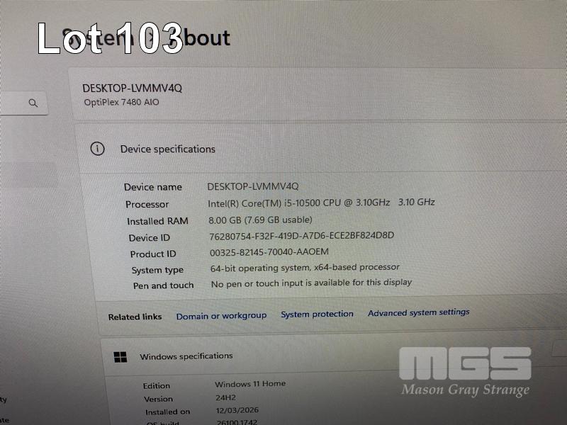 ALL-IN-ONE PC, DELL OPTIPLEX 7480, CORE i5 10500 (10TH GEN) @ 3.1GHz, 8GB DDR4 RAM, 512GB NVMe M.2 SSD, INBUILT 23.8" FHD WIDESCREEN (1920x1080), INTEL HD VIDEO, WEBCAM, 5 x USB, 1 x USB-C, Wi-Fi, BLUETOOTH, WINDOWS 11 HOME INSTALLED, KEYBOARD & MOUSE S/N:2FX54F3