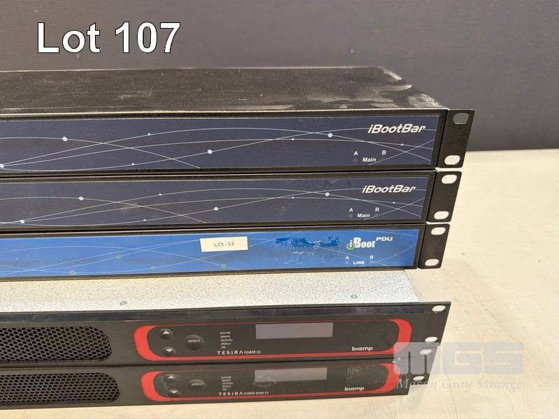2 x DATAPROBE iBOOTBAR iBB-C10 POWER STRIP, 1 x DATAPROBE iBOOTBAR iBOOT-PDU8-C10 PDU, 1 x BIAMP TESIRA FORTE CI AUDO PROCESSOR, 1 x BIAMP TESIRA FORTE DAN CI AUDO PROCESSOR