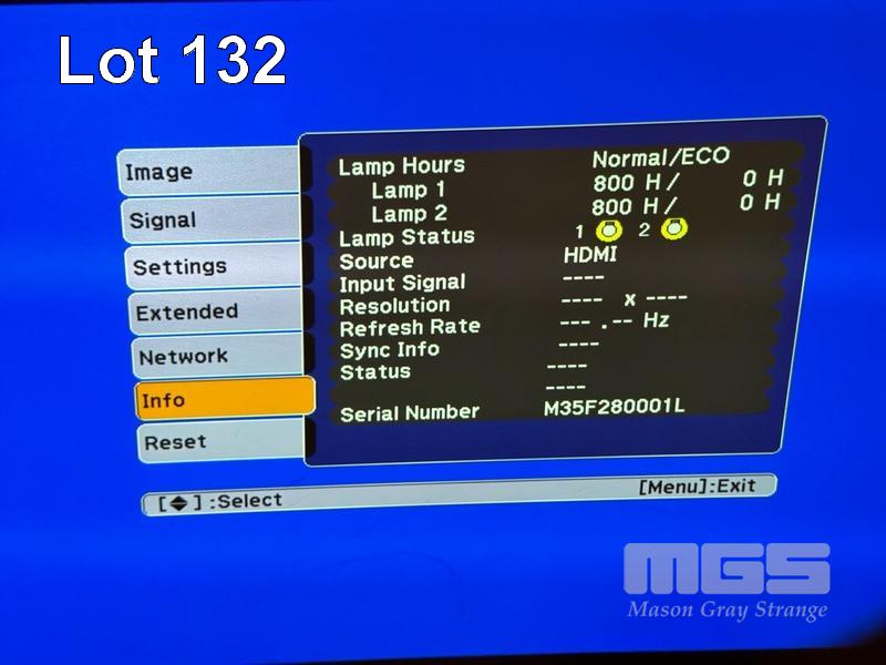 PROJECTOR, EPSON EB-Z8000WU 3LCD LARGE VENUE, 6,000 LUMENS, 800 HOURS LAMP 1, 800 HOURS LAMP 2 SHOWING (NO REMOTE)
