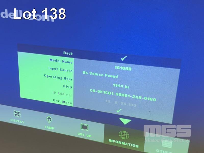 PROJECTOR, DELL 1610HD DLP, 3,500 LUMENS, 1,144 LAMP HOURS, 1,144 OPERATING HOURS WITH REMOTE