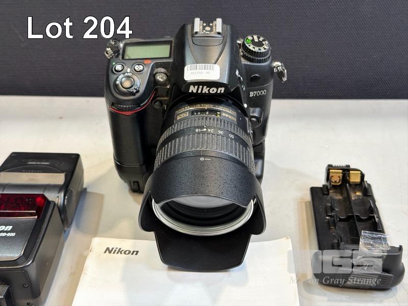 NIKON D7000 DIGITAL CAMERA BODY, NIKON 18-70mm f3.5-4.5 NIKKOR LENS, NIKON SPEEDLIGHT SB-600 FLASHGUN, EXTENDED BATTERY CASE